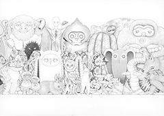 会場では、「せみにんげん」の鉛筆による原画・フルカラーの複製画の展示販売、近作の展示販売に加え、作品集『せみにんげん』の先行販売、展覧会オリジナルグッズの販売を行います。