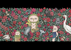 本展は、玄光社より刊行される作品集『せみにんげん』に収録された原画を中心に、近年の代表的作品が一堂に会します。前回の個展「むかしむかし」では、物語に潜在する不安や綻び、温かみやユーモア要素をモノクロームの世界へ凝縮させました。本展「せみにんげん」では、技法を一新し、鉛筆による原画にデジタル彩色を組み合わせる新たな手法を採用し、自己の内面・記憶、社会構造を巡る旅を「せみちゃん」というキャラクターを通して、鮮やかにファンタジックに物語として描き出しました。